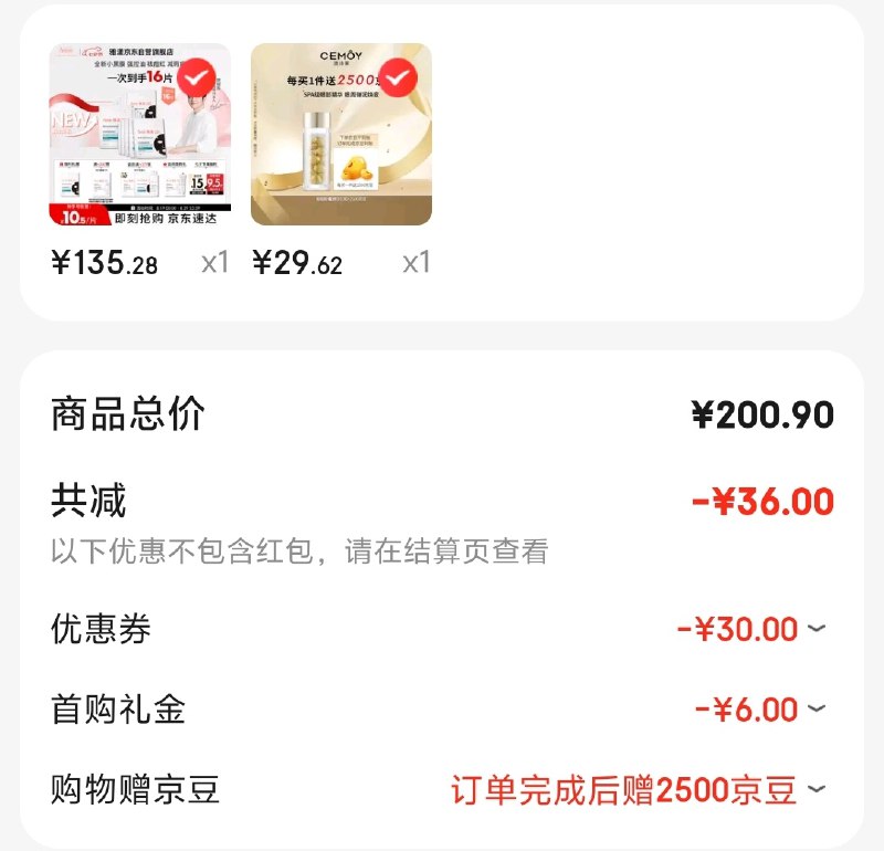 到手29.62元;返2500京豆;实付4.9