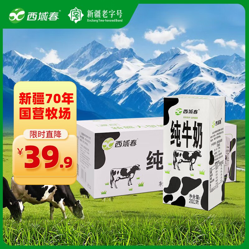 西域春 新疆纯牛奶早餐奶整箱206g×20盒