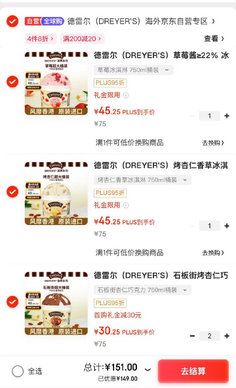 【自营】德雷尔 冰淇淋 750ml